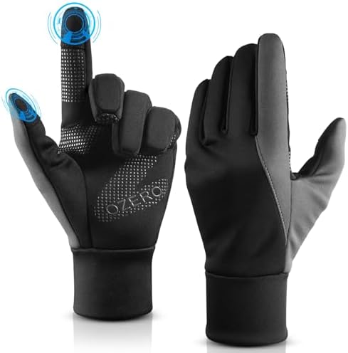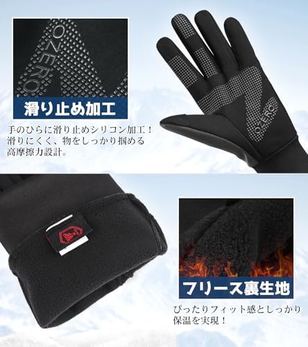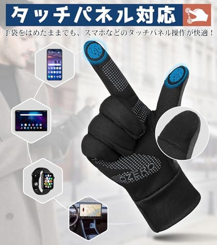 [OZERO] 手袋 メンズ スマホ対応 防寒 冬 ランニンググローブ [滑り止め 撥水加工 軽量 暖かい 薄手] 運転 ジョギング 登山 サッカー 自転車 通勤 通学 ブラック